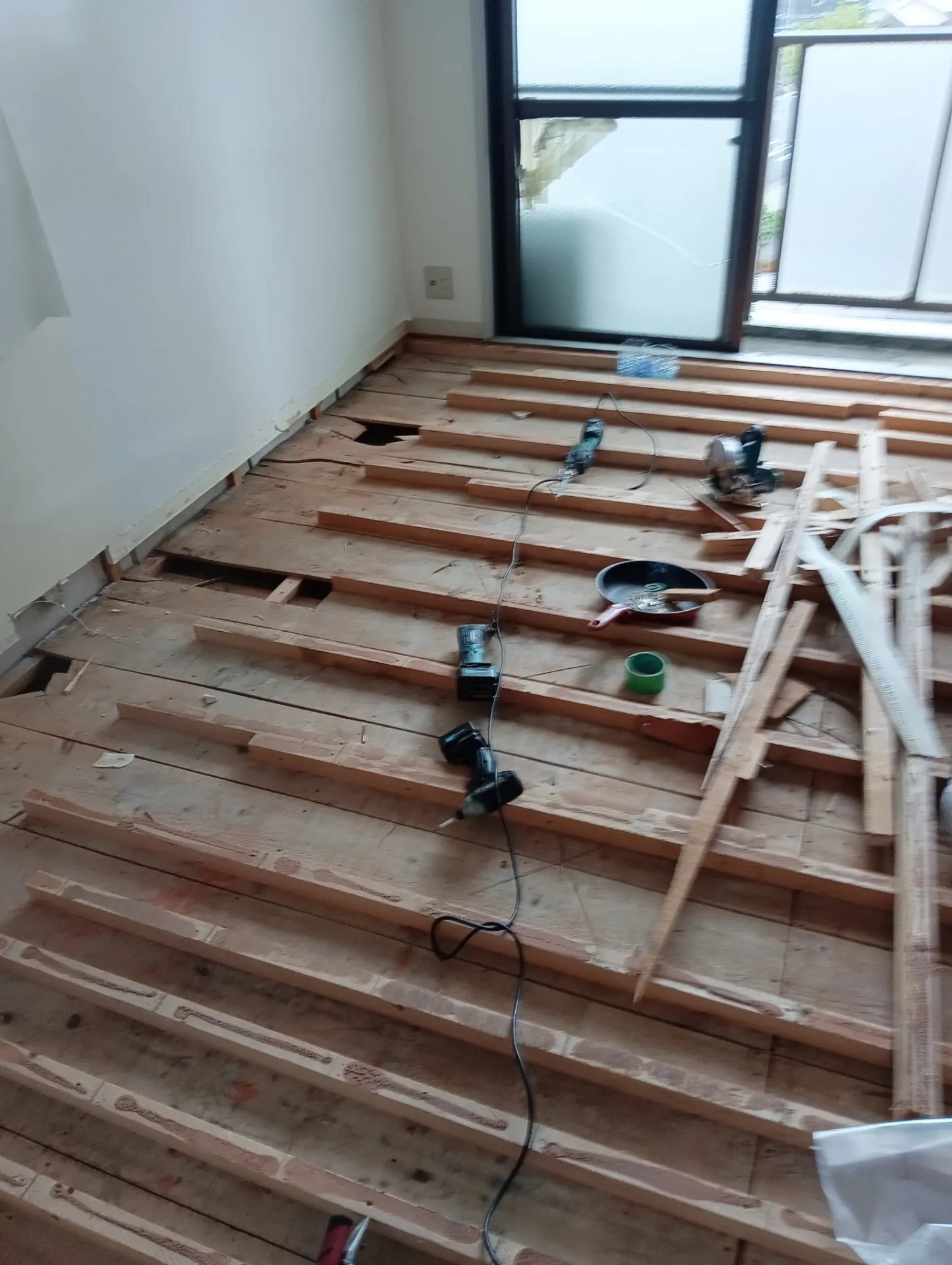 足立区でリフォーム業をしているリベロの小川です、今回はワンルームの賃貸のお部屋でフローリングにシミが出来たのでちょっと丈夫なフロアタイルにリフォームです、フローリングを剥がすのは一苦労ですが下地のレベル調整や補強して捨て貼りまで来るとあと一息だと思い仕上げのフロアタイル施工が楽しみになってキレイに仕上がると一層の達成感がありますね、お客様にもキズが付きにくくお手入れも楽そうねと喜んで頂きました、この様に1部屋のリフォームでもお気軽にお問い合わせください!