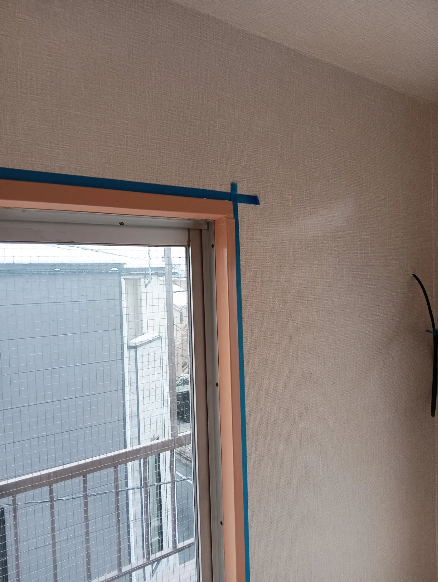 まずはクロスを剥がしボードを撤去して枠を両サイドの縦枠から切離し同サイズの枠材を加工して取付新規のボードを貼って塗装用に養生をして色を合わせて塗り最後のクロスを貼って完了です