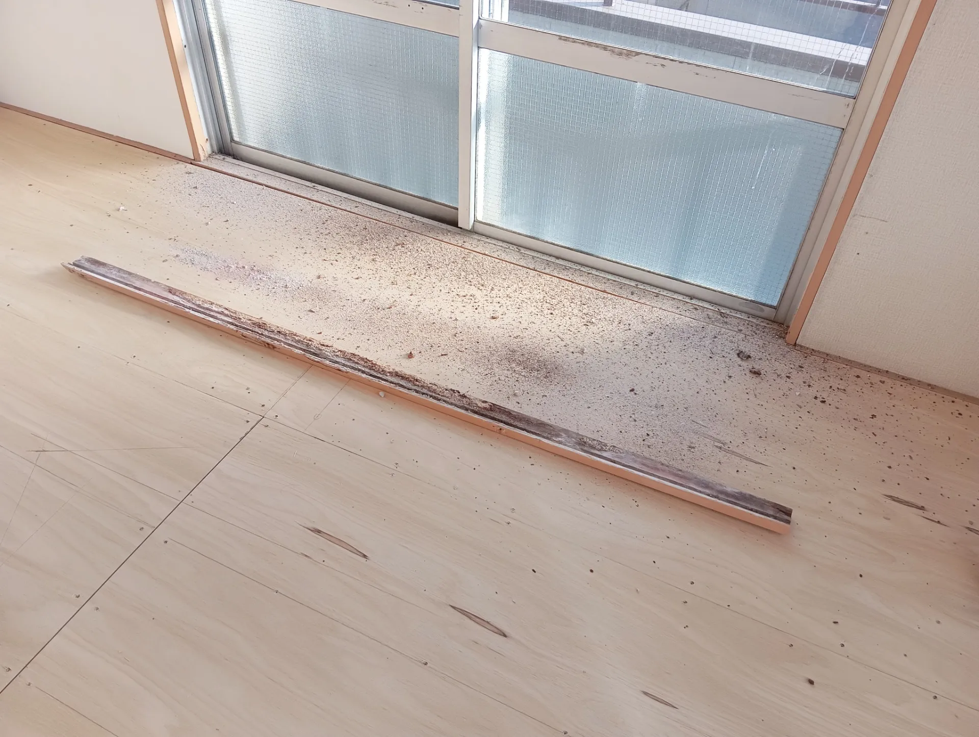 こんにちは、足立区でリフォーム業しているリベロの小川です 今回は経年の少しの雨漏りが原因でサッシ枠の腐食が進行してシロアリ被害の様に内側からボロボロになってボードから肌分かれをしてカーテンレールごと落ちかかってました、もちろんボードも湿気が抜けきれずカビが発生して軽く押しただけで穴が開いてしまうほどスカスカになっていました